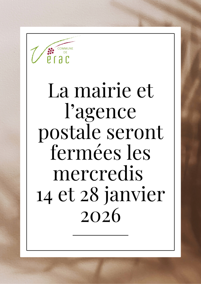 LA MAIRIE ET L’AGENCE POSTALE SERONT EXCEPTIONNELLEMENT FERMÉES