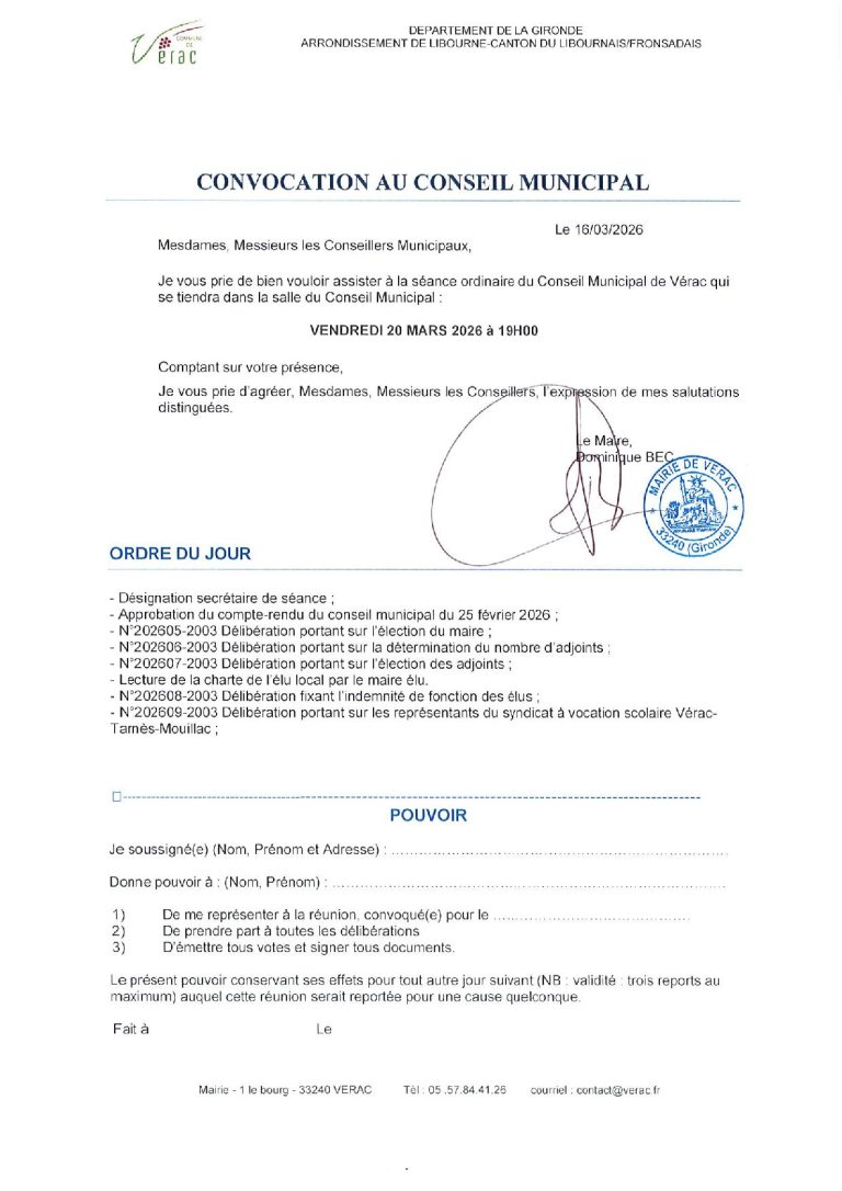 CONSEIL MUNICIPAL DU 20 MARS 2026