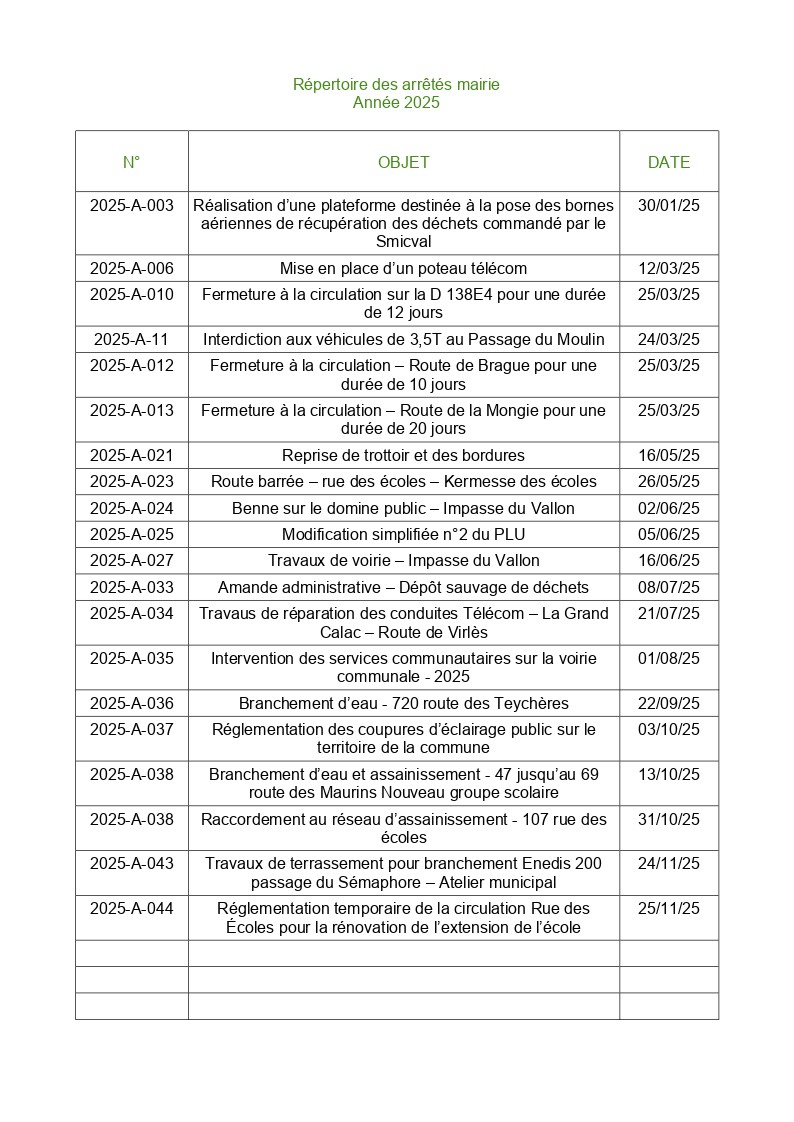 Arrêté 2023-A-011 Intervention des services communautaires sur la voirie communale Année 2023