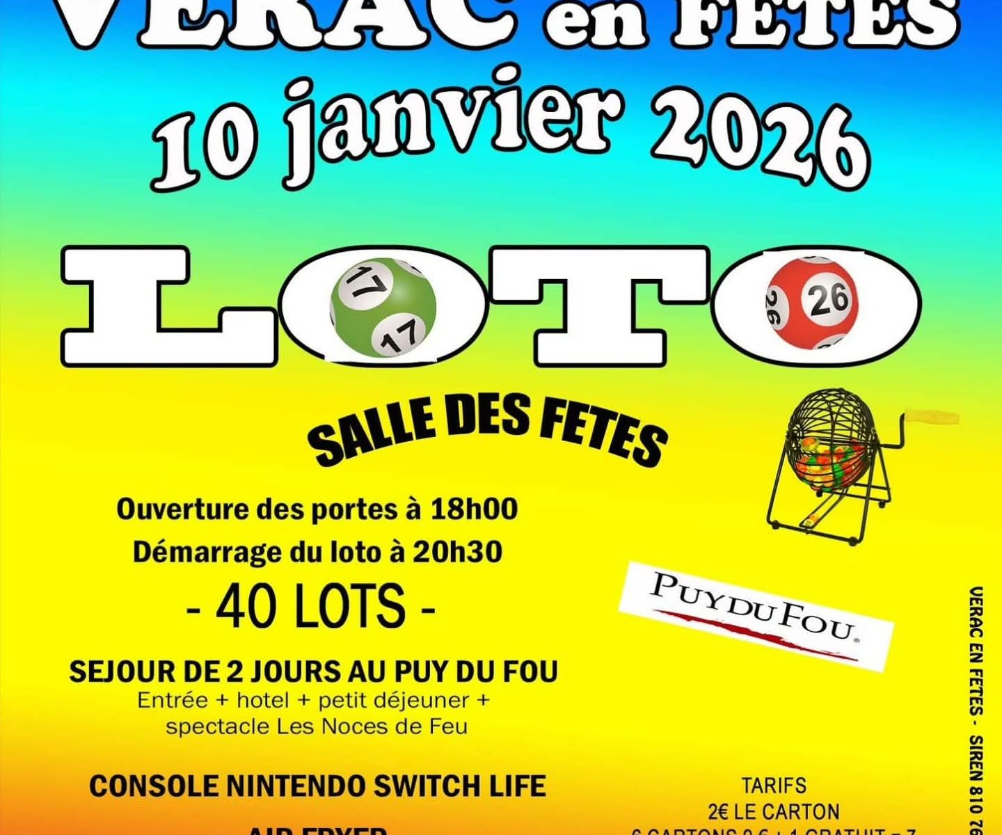 VERAC EN FETES – LOTO – 10 JANVIER 2026