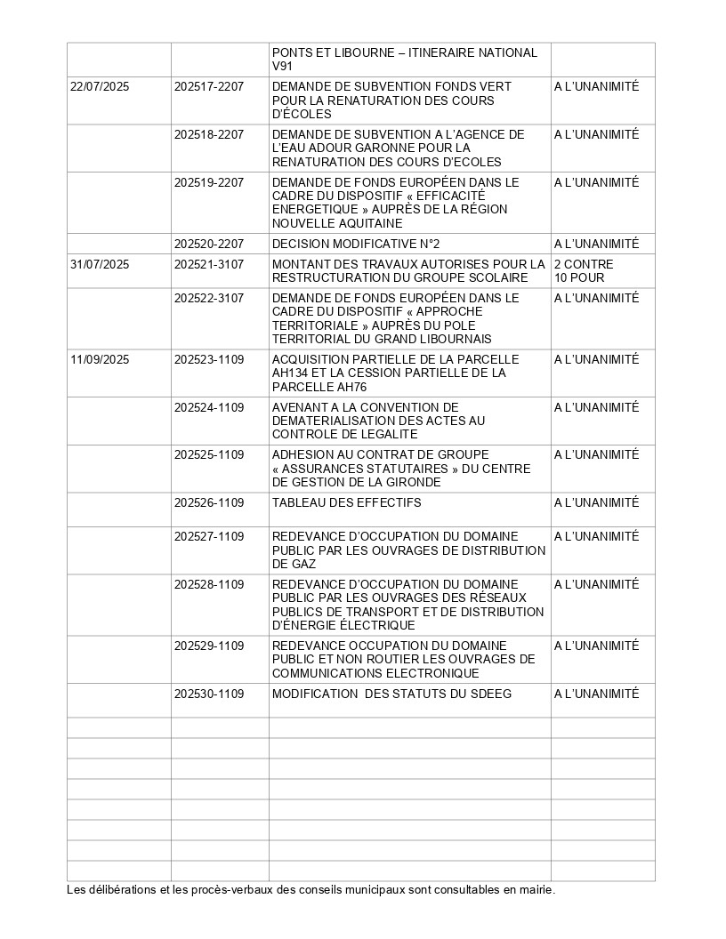 Délibérations 2025